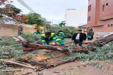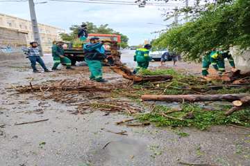 جمع آوری وساماندهی بیش از ۱۰۰ مورد شاخه ودرخت شکسته در پی بارندگی وطوفان بندرعباس