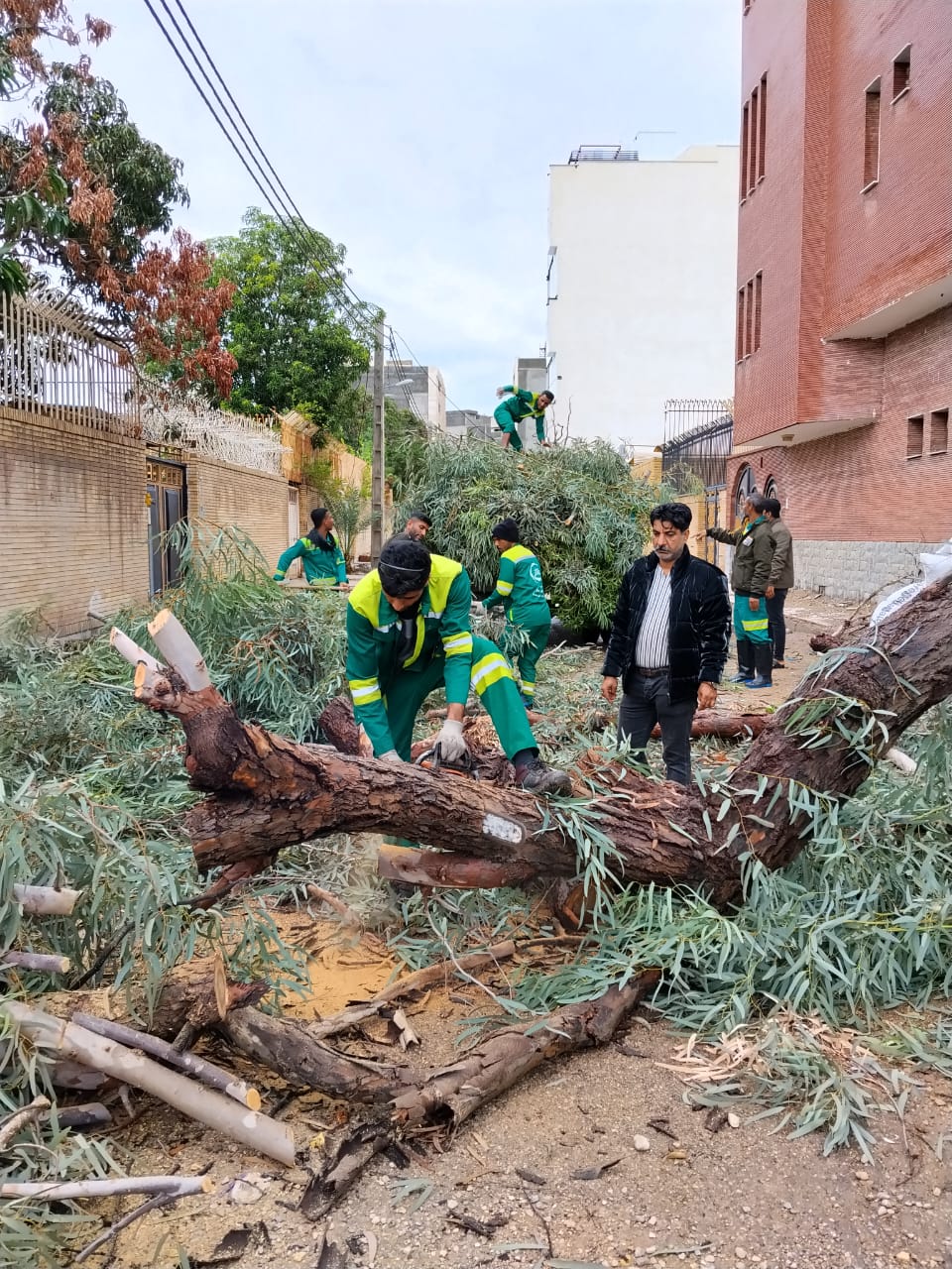 درپی بارندگی شدید و طوفان اخیر در بندرعباس ،موجب شکستگی شاخه ها وسقوط درختان در نقاط مختلف شهر شد ،که با تلاش شبانه روزی کارکنان مناطق چهارگانه ،بیش از ۱۰۰ مورد ازاین موارد شناسایی،ایمن سازی وجمع اوری شد